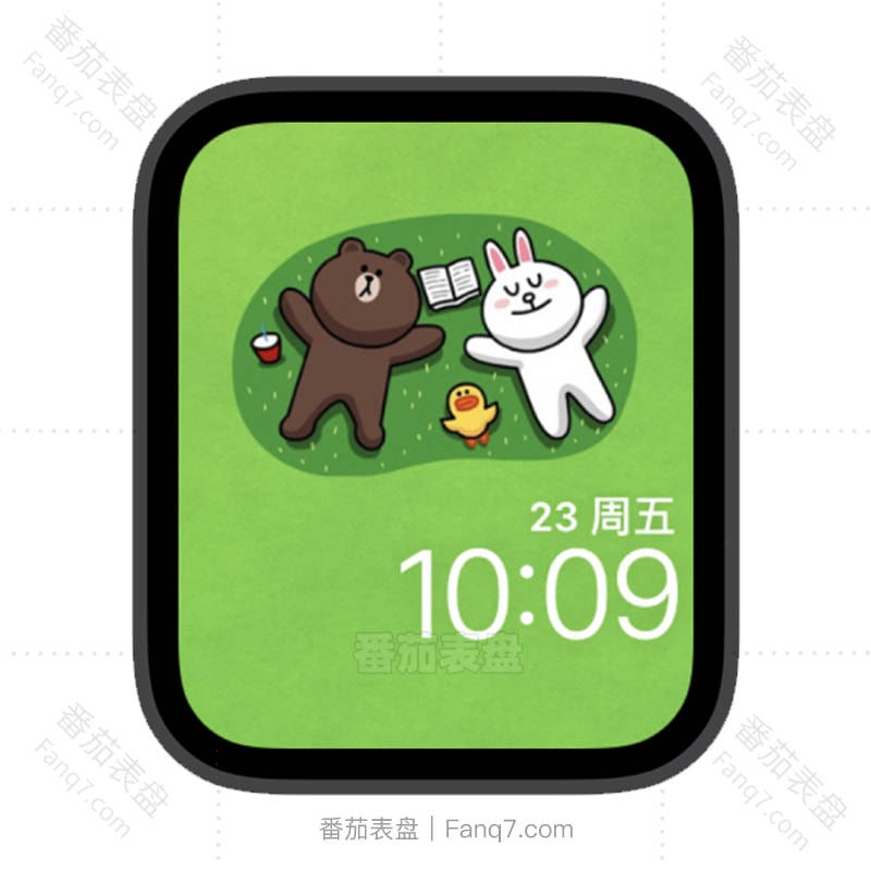 line friend草地上布朗熊和可妮兔莎莉鸡苹果iwatch壁纸表盘.watchface