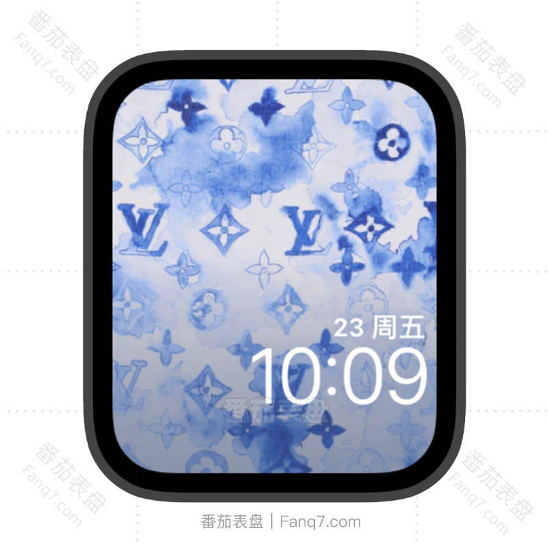 LV经典印花水墨浅蓝LOGO苹果iwatch壁纸表盘.watchface