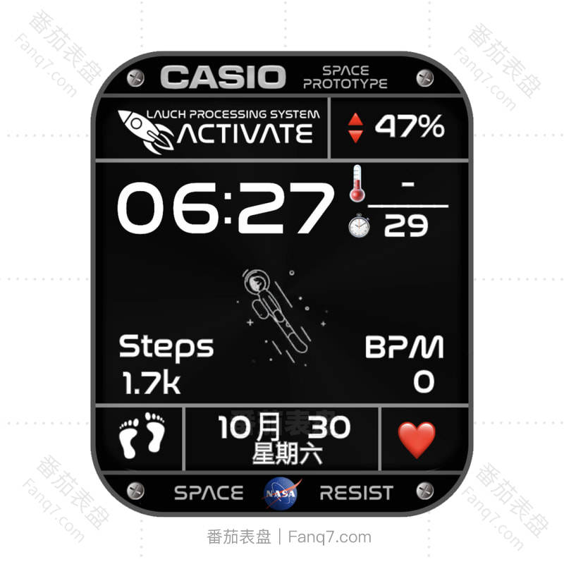 卡西欧CASIOG黑色新太空人表盘.clock