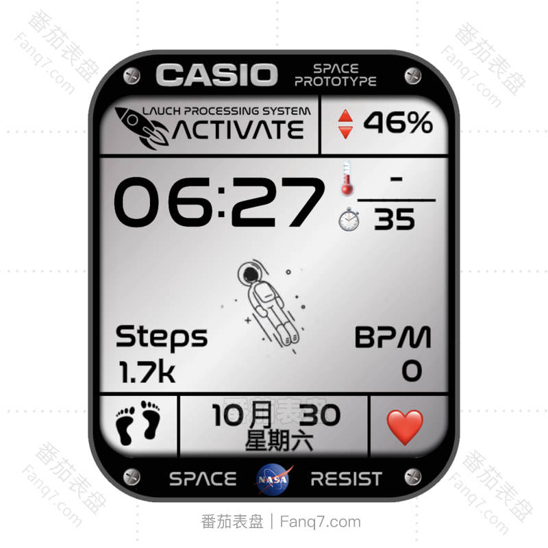 卡西欧CASIOG银色光面新太空人表盘.clock