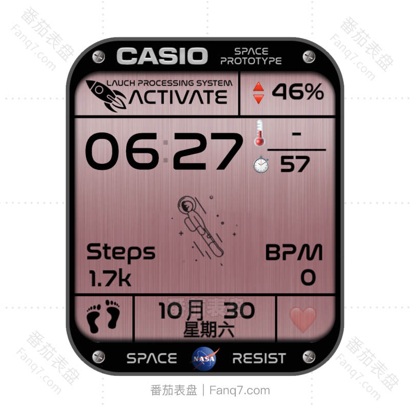 卡西欧CASIOG粉金黄色光面新太空人表盘.clock