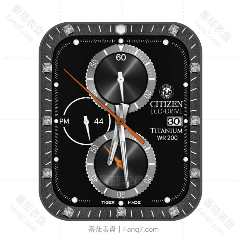 西铁城CITIZEN黑色镶钻灰色外圈三盘表盘.clock