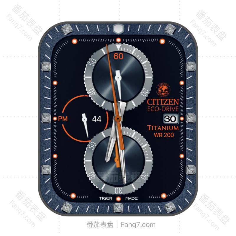 西铁城CITIZEN黑色镶钻蓝色外圈三盘表盘.clock