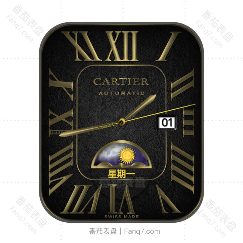 Cartier卡地亚黑色玫瑰金日月表盘.clock