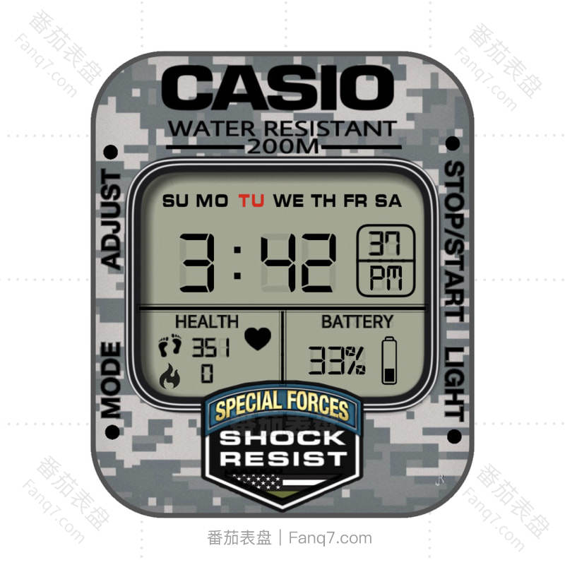 卡西欧CASIOG迷彩灰白复古表盘.clock