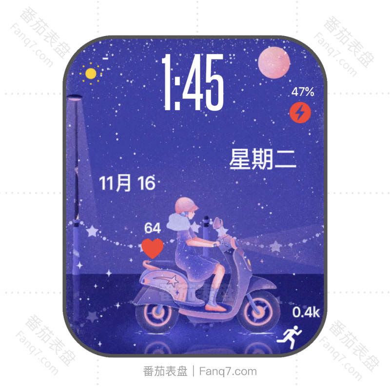 lambretta紫色骑电动车少女卡通浪漫动态表盘.clock