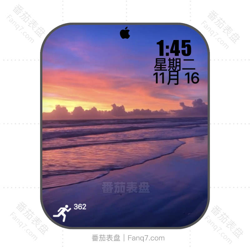 _Ocean view日落晚霞海滩浪花动态表盘.clcok