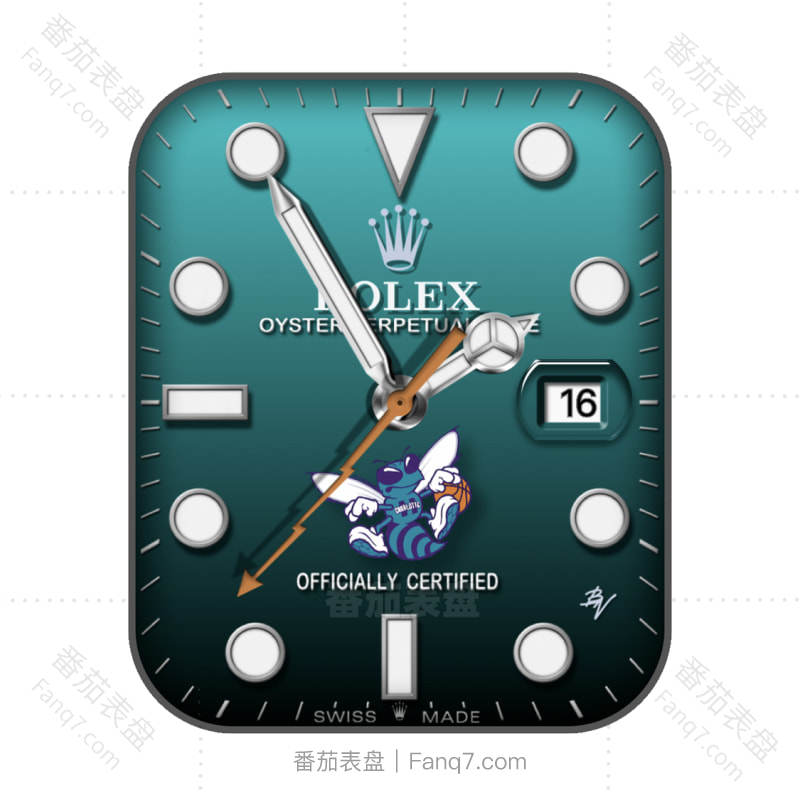 劳力士ROLEX蓝绿Charlotte Hornets 夏洛特黄蜂队表盘.clock