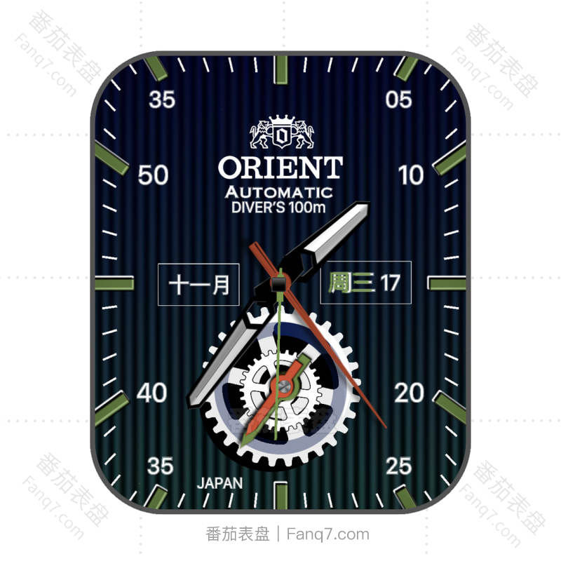 Orient东方双狮蓝绿渐变条纹重力飞陀表盘.clock