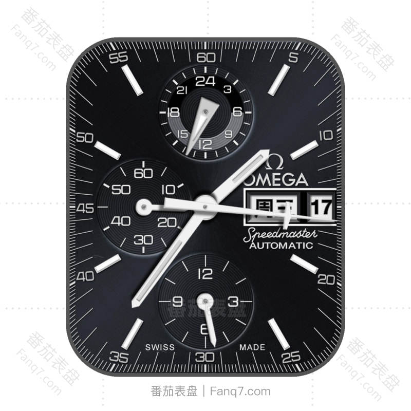 OMEGA 欧米茄深黑色三盘表盘.clock
