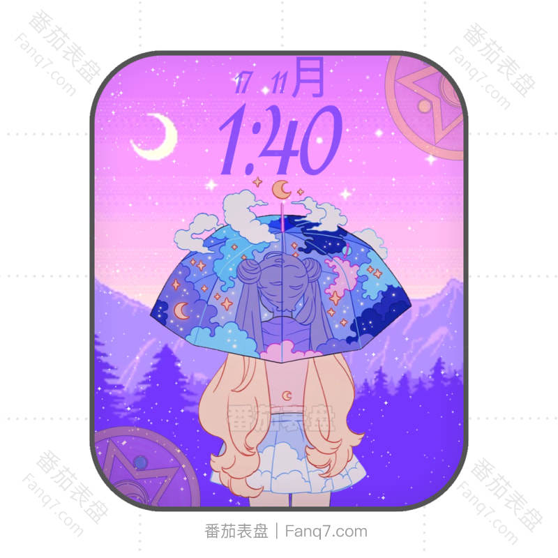 粉色少女撑伞水冰月可爱卡通表盘.clock