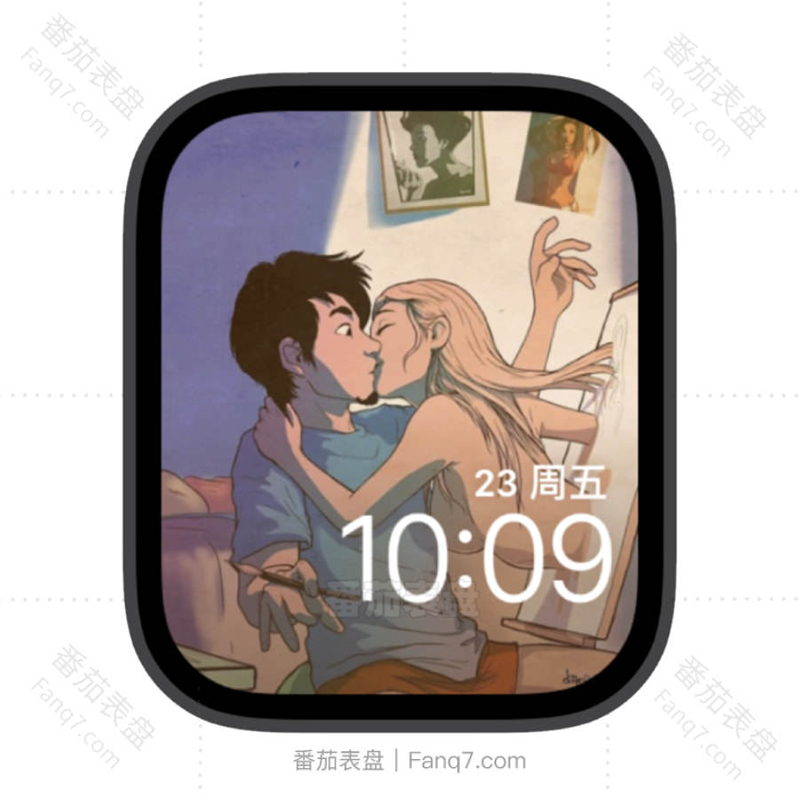 画家被画中的美女亲吻苹果iwatch壁纸表盘.watchface
