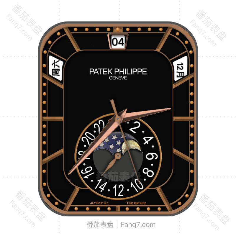partek philippe百达翡丽黑色玫瑰金中世纪风格表盘.clock