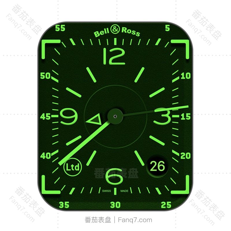 bell & ross 柏莱士黑底绿色罗马数字表盘.clock