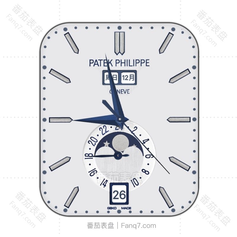 partek philippe百达翡丽白底蓝色刻度日月表盘.clock