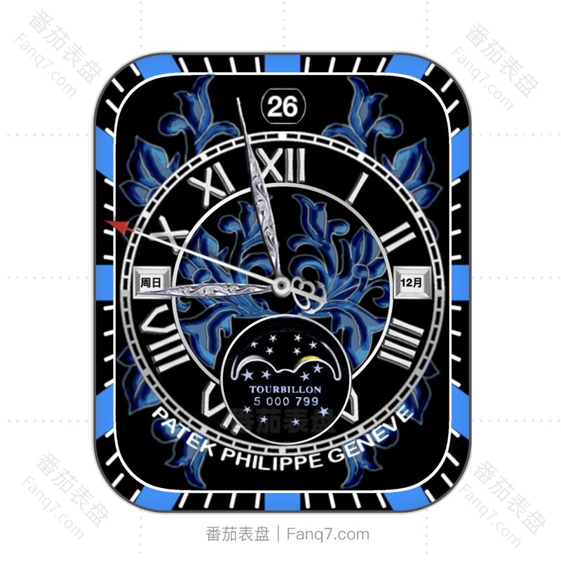 partek philippe百达翡丽深蓝色水纹花黑色表盘.clock