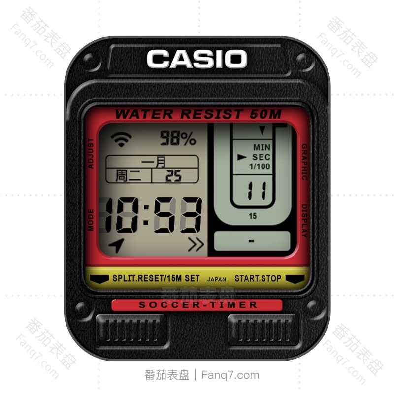 CASIO卡西欧数字仪表左右排列黑搭红黄表盘.clock