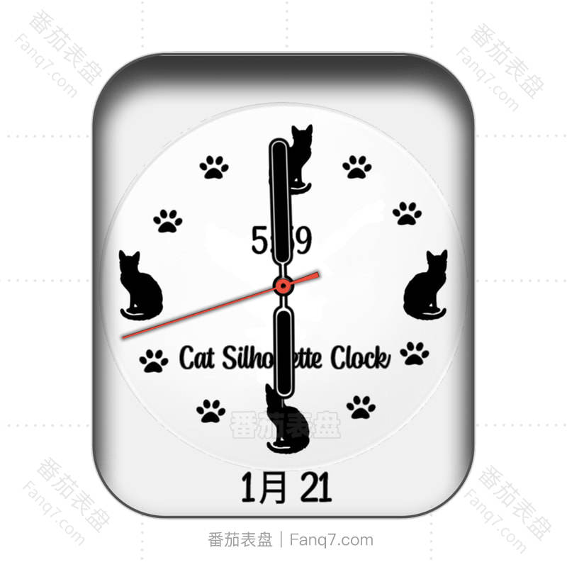 Cat_Silhouette白色底黑猫和猫爪可爱刻度表盘.clock