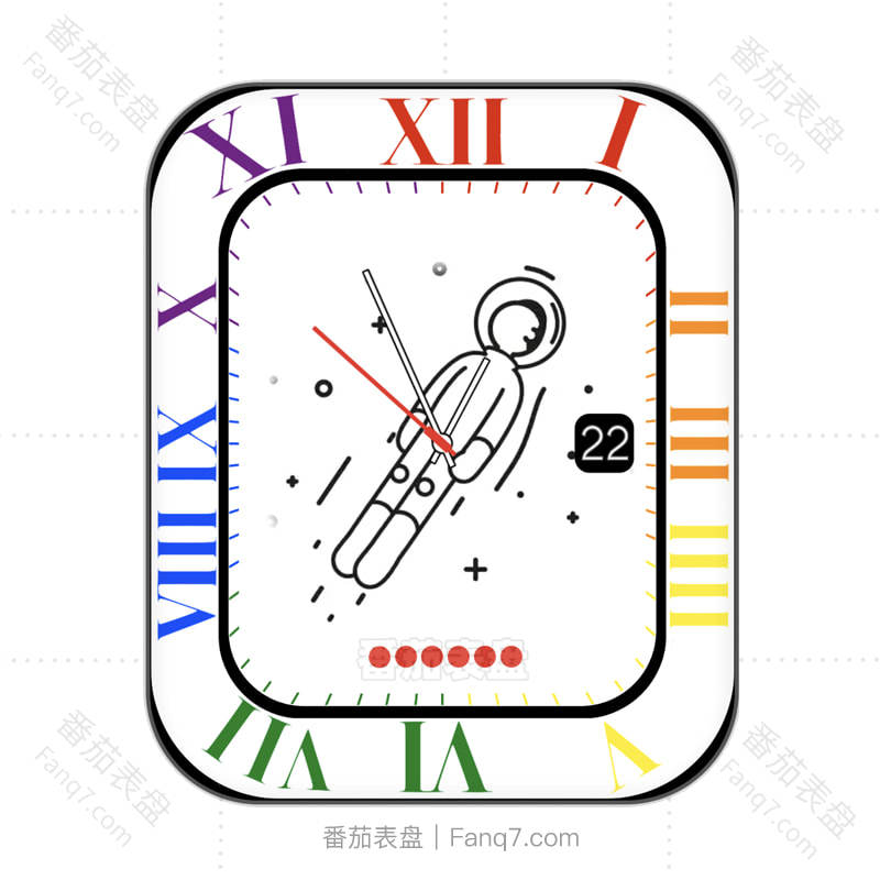 白色太空人旋转白色底多彩周期刻度表盘.clock