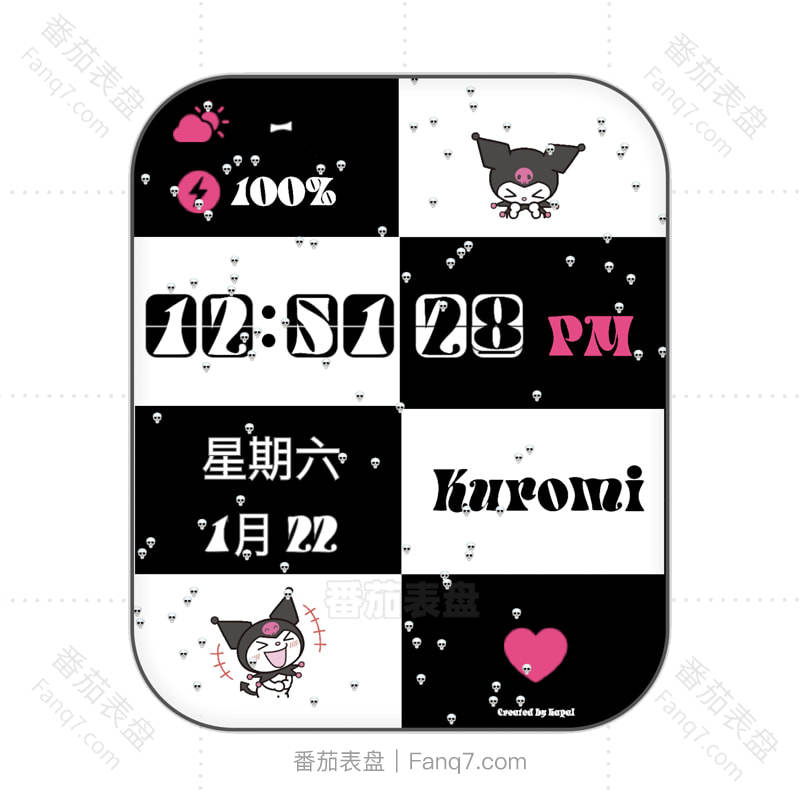 Kuromi酷洛米黑白方格卡通可爱表盘.clock