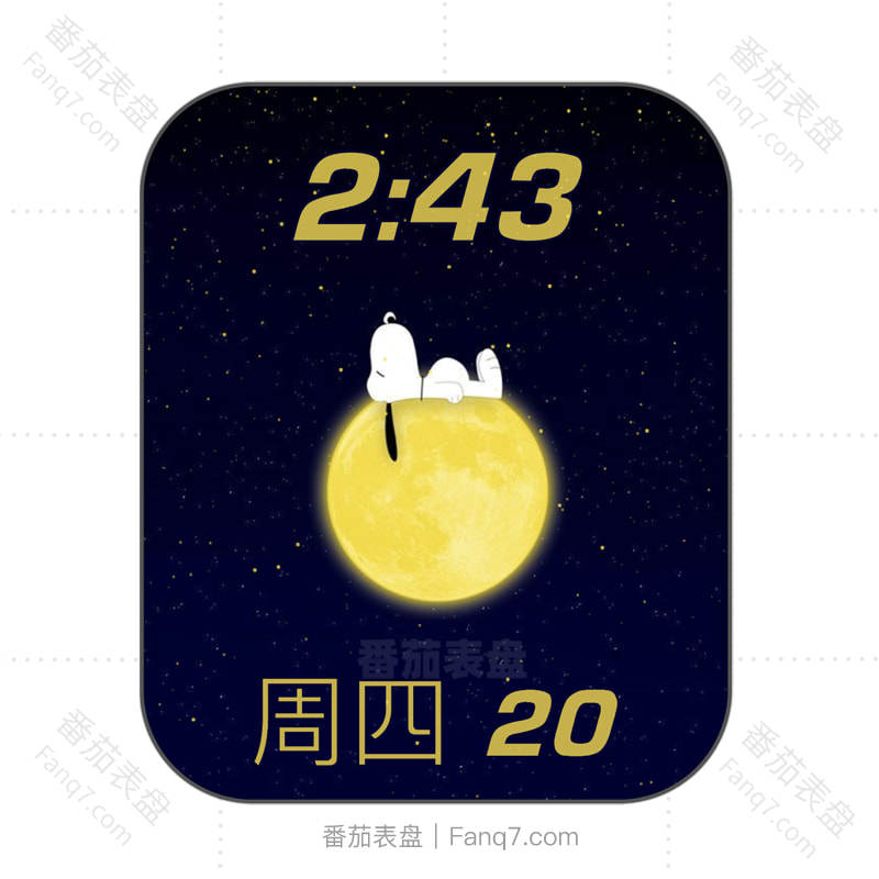 史努比snoopy黑色底躺在黄色球上表盘.clock