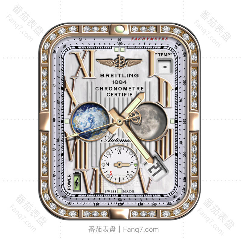 breitiling百年灵钻石边玫瑰金地球 三盘表盘.clock
