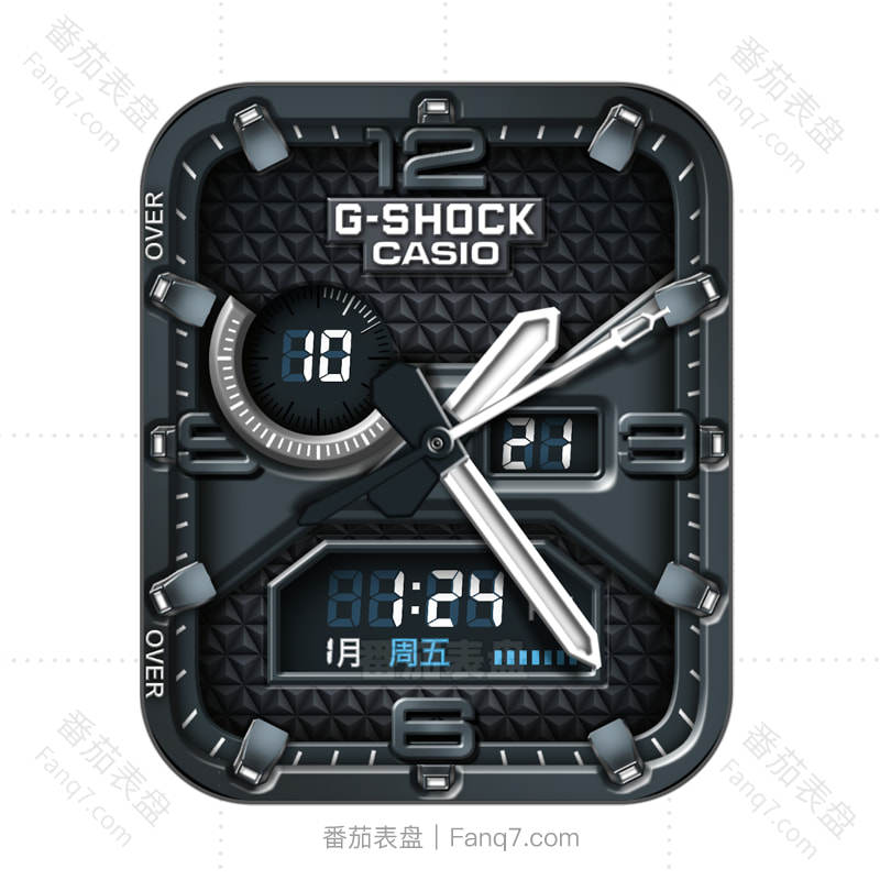 卡西欧Casio深蓝色方格机械表盘.clock