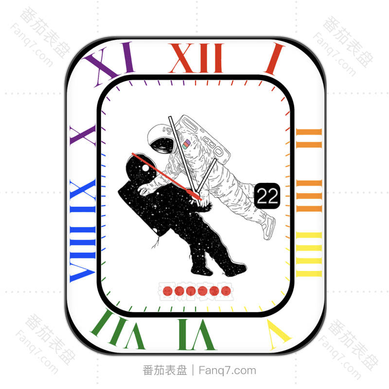白色底黑白两个太空人彩色周期刻度表盘 .clock