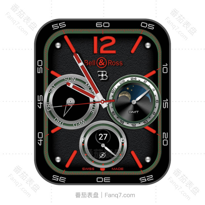 bell & ross 柏莱士酷黑红三盘数字仪表表盘.clock