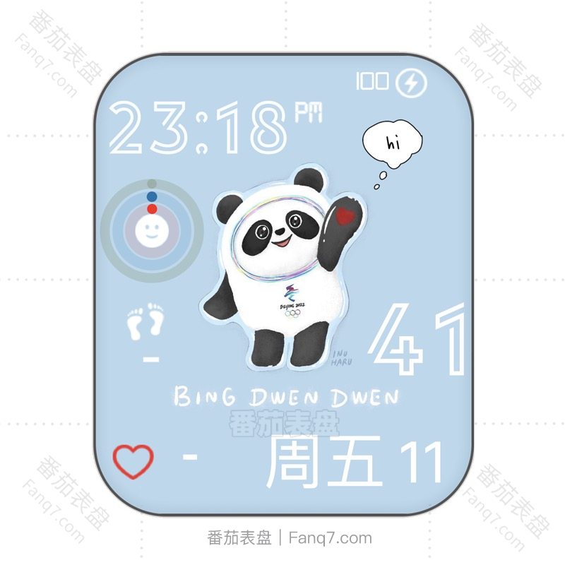 2022年冬奥会吉祥物蓝色冰墩墩可爱插画番茄独家表盘.clock