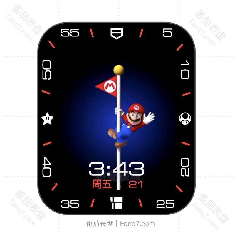 深蓝色渐变黑超级玛丽mario在旗上旋转卡通表盘.clock