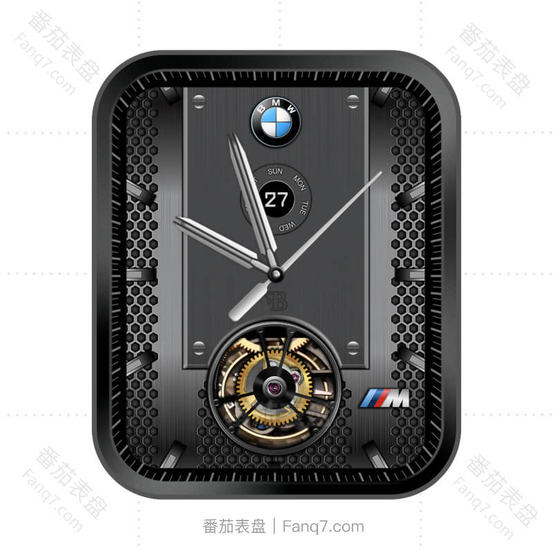 BMW宝马汽车logo标志陀飞轮黑灰拉丝蜂窝表盘.clock