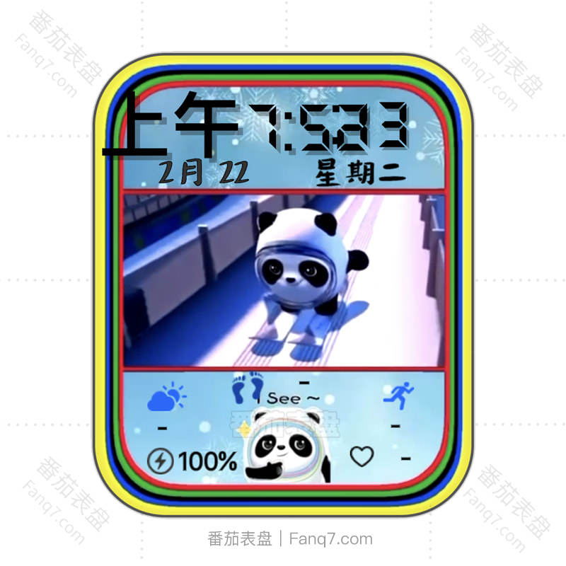 2022年冬奥会蓝色冰墩墩滑雪运动动态表盘.clock