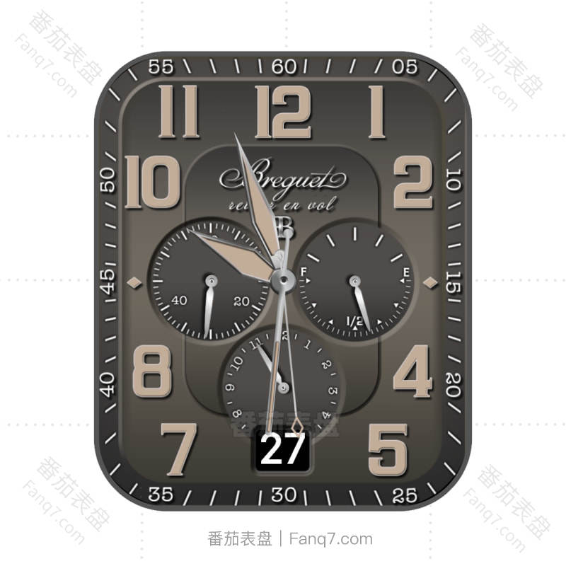 宝玑Breguet棕色三盘大字时刻表盘.clcok