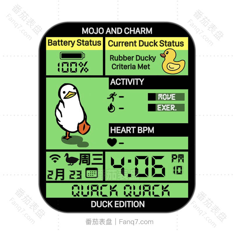 Mojo and Charm -Duck 魔力大嘴鸭摇晃走路绿色表盘.clock