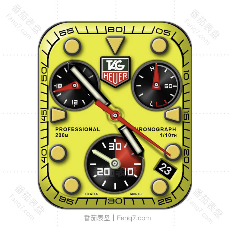 TAG Heuer泰格豪雅黄色三盘表盘.clock
