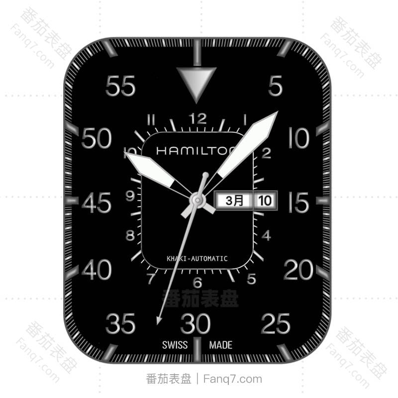 Hamilton汉米尔顿黑色简约白色刻度表盘.clock