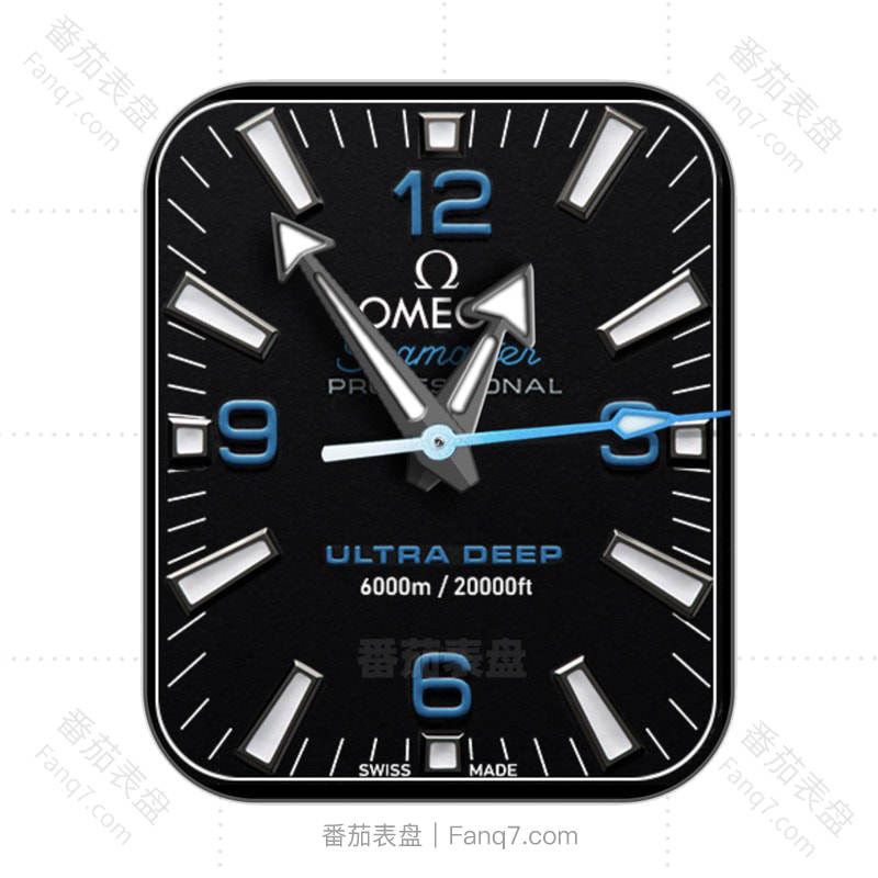 OMEGA 欧米茄黑底蓝色刻度表盘.clock