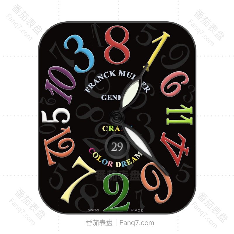 Franck Muller 法兰克穆勒黑底七彩大数字时间表盘.clock