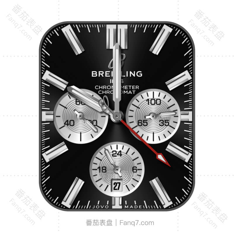 BREITLING百年灵机械计时系列酷黑三盘银色简约表盘.clock