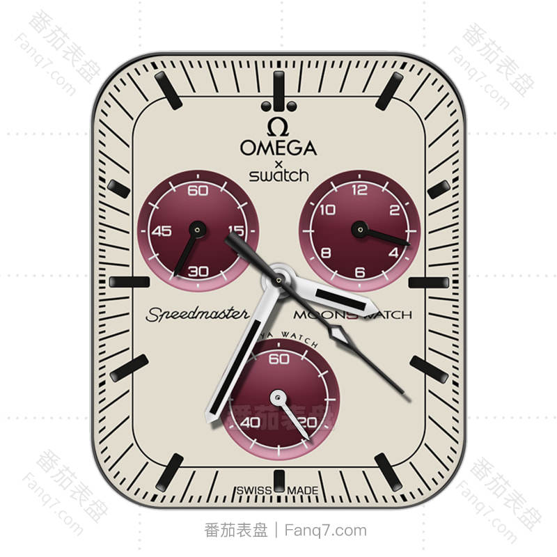 欧米茄OMEGA米黄色红色三盘表盘.clock