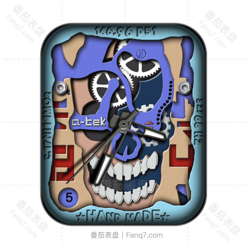 A-TEK SKULL HAND MADE蓝色骷髅表盘.clock