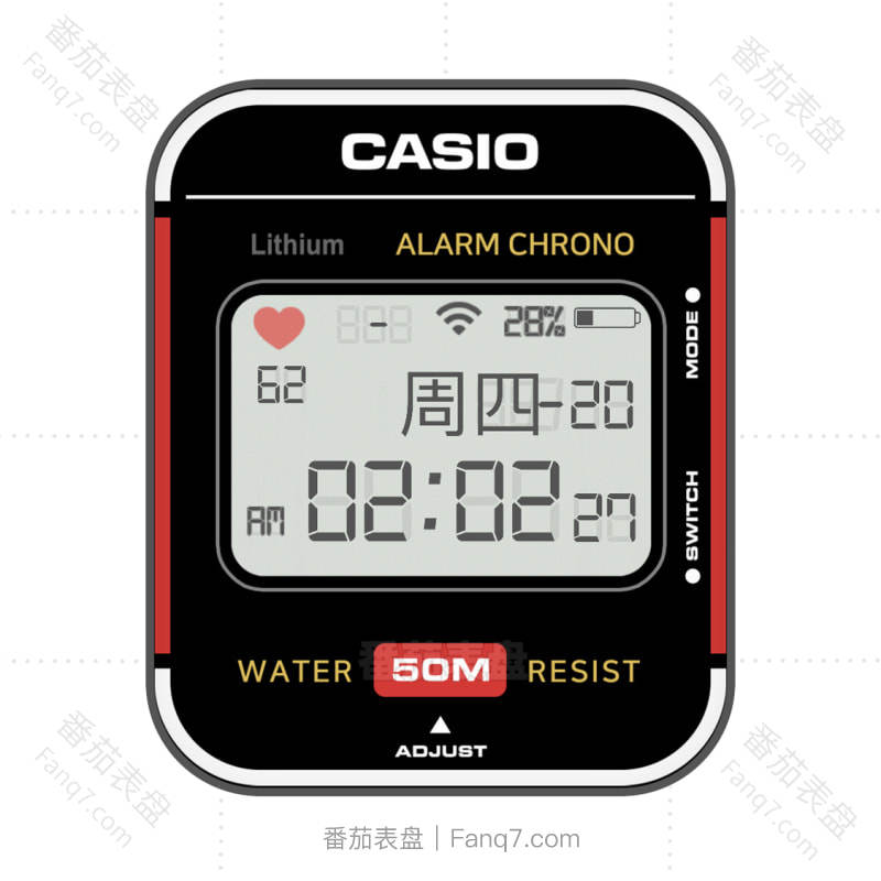 卡西欧CASIO经典系列简约风职场日常复古酷黑炫红撞色.clock
