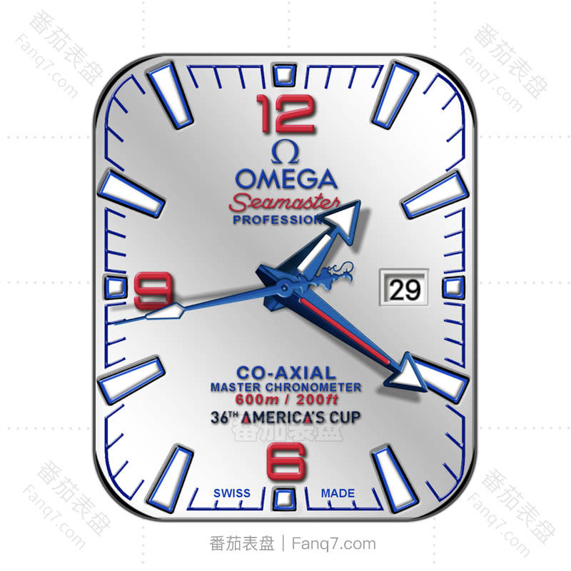 欧米茄OMEGA银白色底红蓝刻度表盘.clock