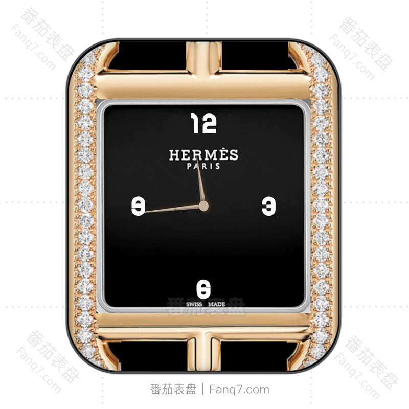 hermes爱马仕黑色底玫瑰金镶钻表盘.clock