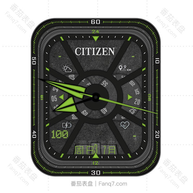 西铁城CITTZEN黑色磨砂绿色刻度表盘.clock