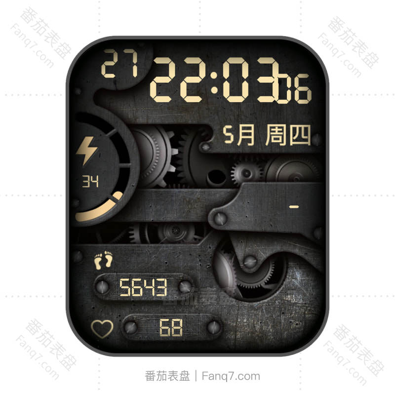 酷铁黑浅黄机械齿轮表盘.clock