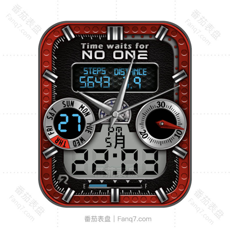 电台数字黑红双盘金属表盘.clock