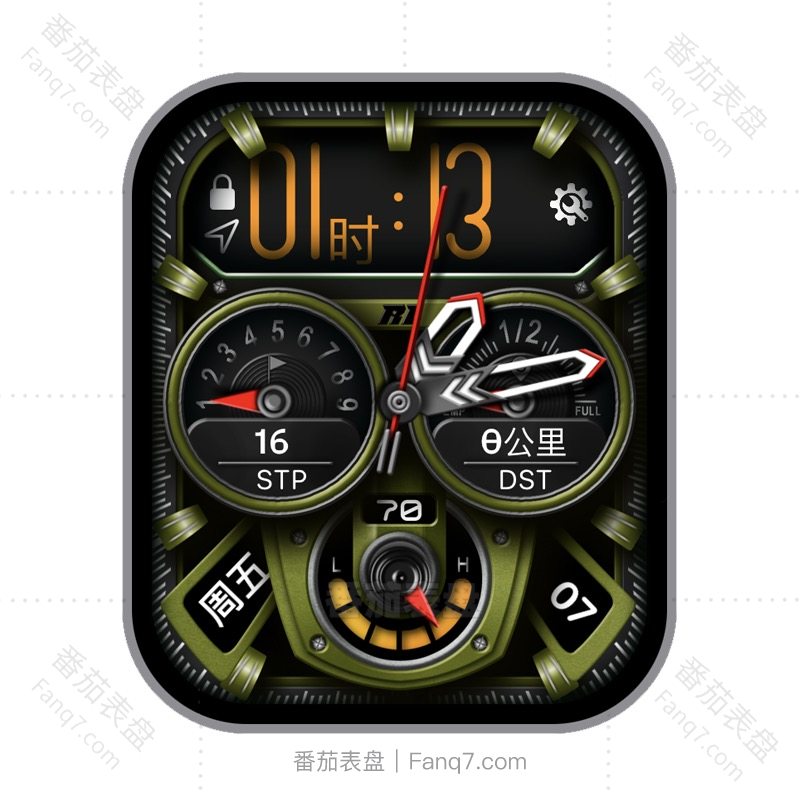 上显示器下三盘仪表高级复杂棕绿色表盘.clock