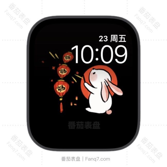 可爱的小白兔摇摆着灯笼苹果iwatch壁纸表盘.watchface